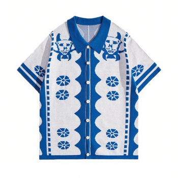 เสื้อสเวตเตอร์ถักแขนสั้นสำหรับผู้ชายเสื้อสเวตเตอร์ถักแบบถักลายแจ็คการ์ดสำหรับฤดูร้อนผลิตตามสั่ง