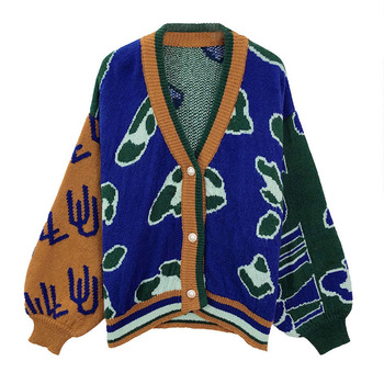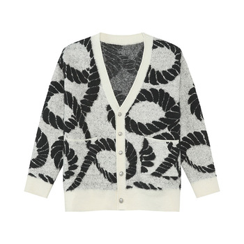เสื้อสเวตเตอร์ถักแจ็คการ์ดแขนยาวสำหรับผู้หญิงเสื้อถักคาร์ดิแกนคอวีสำหรับฤดูหนาวโลโก้ตามสั่ง