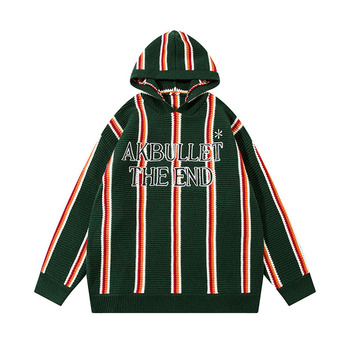 เสื้อโค้ทถักแบบลำลองของผู้ชายเสื้อมีฮู้ดแบบสวมหัวมีลายทางผ้าฟัซซี่เสื้อสเวตเตอร์ถักงานปักโลโก้ตามสั่ง