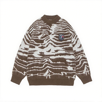 เสื้อสเวตเตอร์ถักแบบสวมหัวแขนยาวผ้าขนแกะลายม้าลายเสื้อสวมหัวโลโก้ตามสั่ง OEM