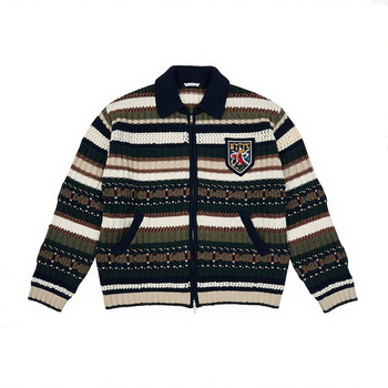 เสื้อสเวตเตอร์คาร์ดิแกนแขนยาวสำหรับผู้ชายงาน OEM ตามสั่งปักลายมีซิปสำหรับฤดูหนาว